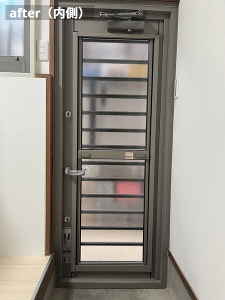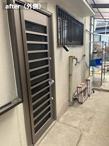 換気や採光がしやすくなり、防犯性にも配慮。外からの視線をやわらげながら、明るく安心な出入口に生まれ変わりました。