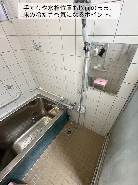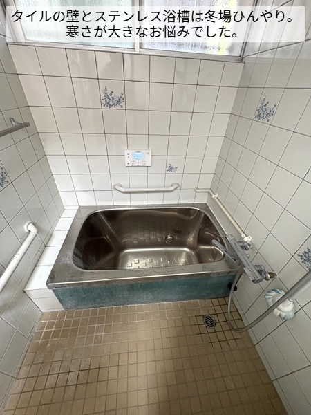 以前はタイル貼り+ステンレス浴槽で冬場はとても寒く、お掃除も大変でした。