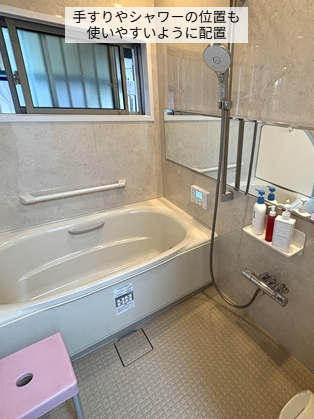 シャワー・手すり位置も使いやすくなり、ご夫婦ともにとてもご満足いただいています。