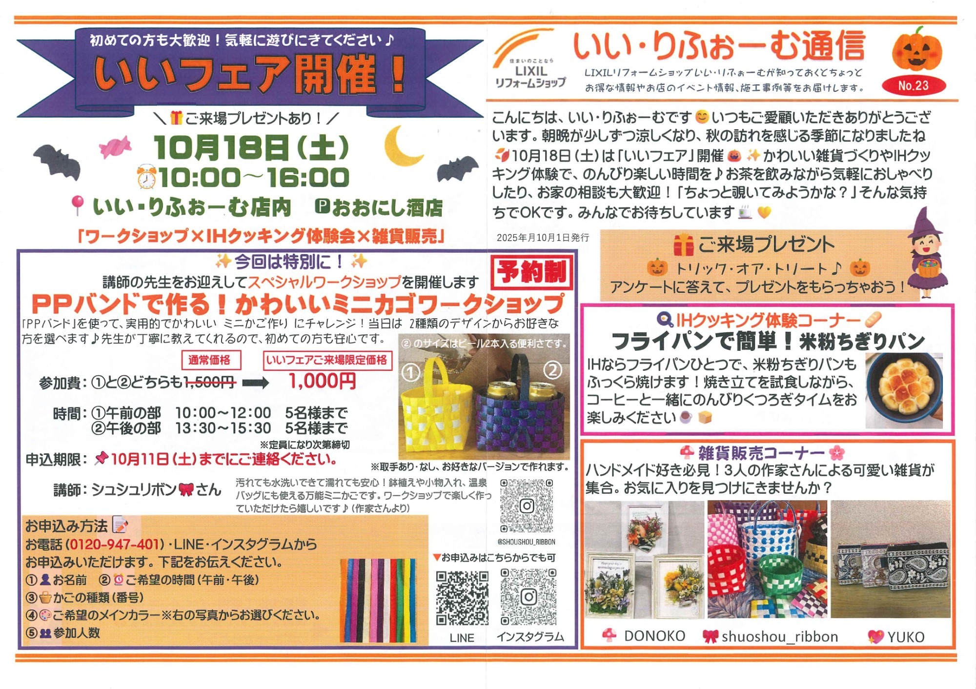 10月18日(土)は、毎回ご好評いただいている「いいフェア」を開催します!