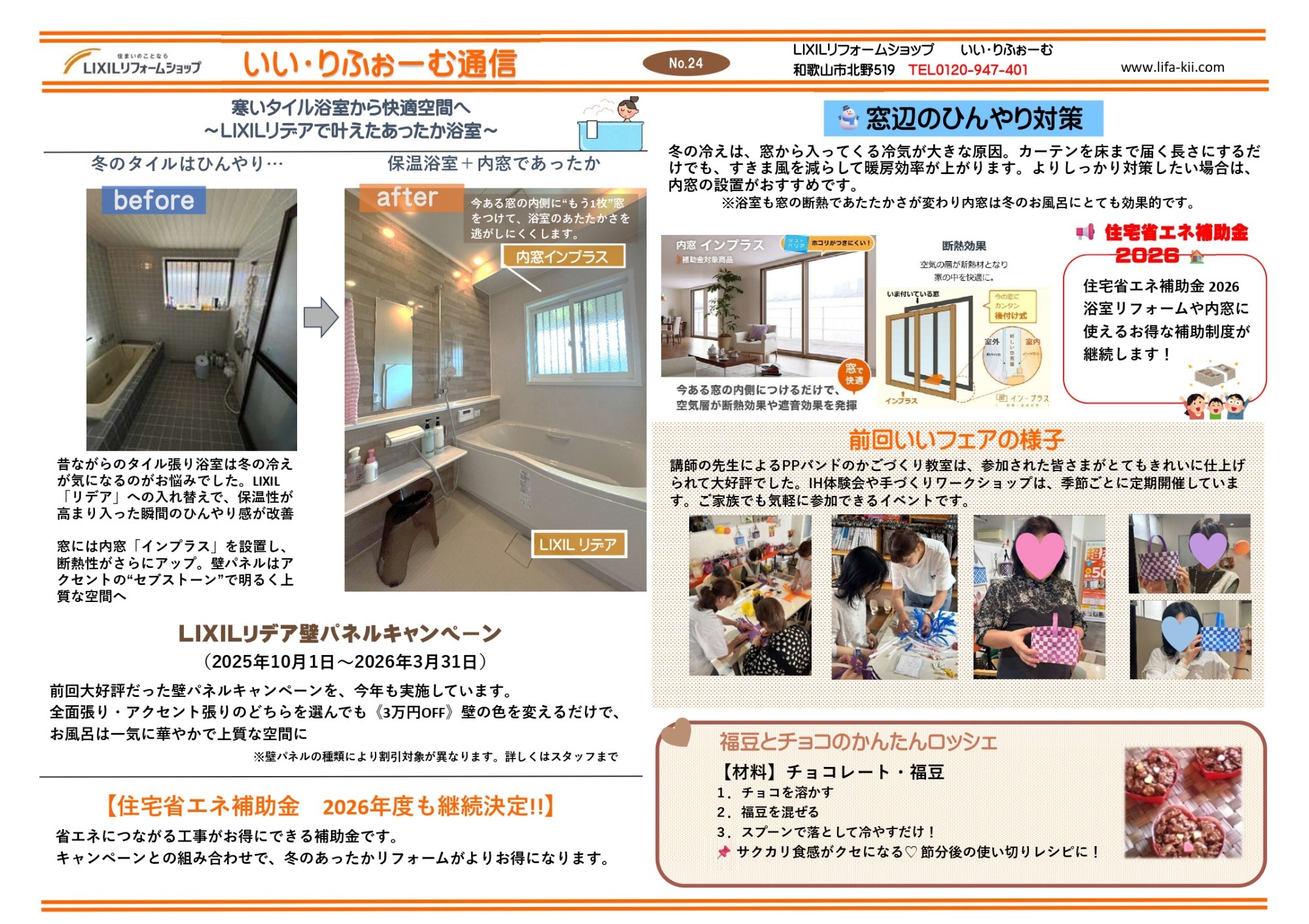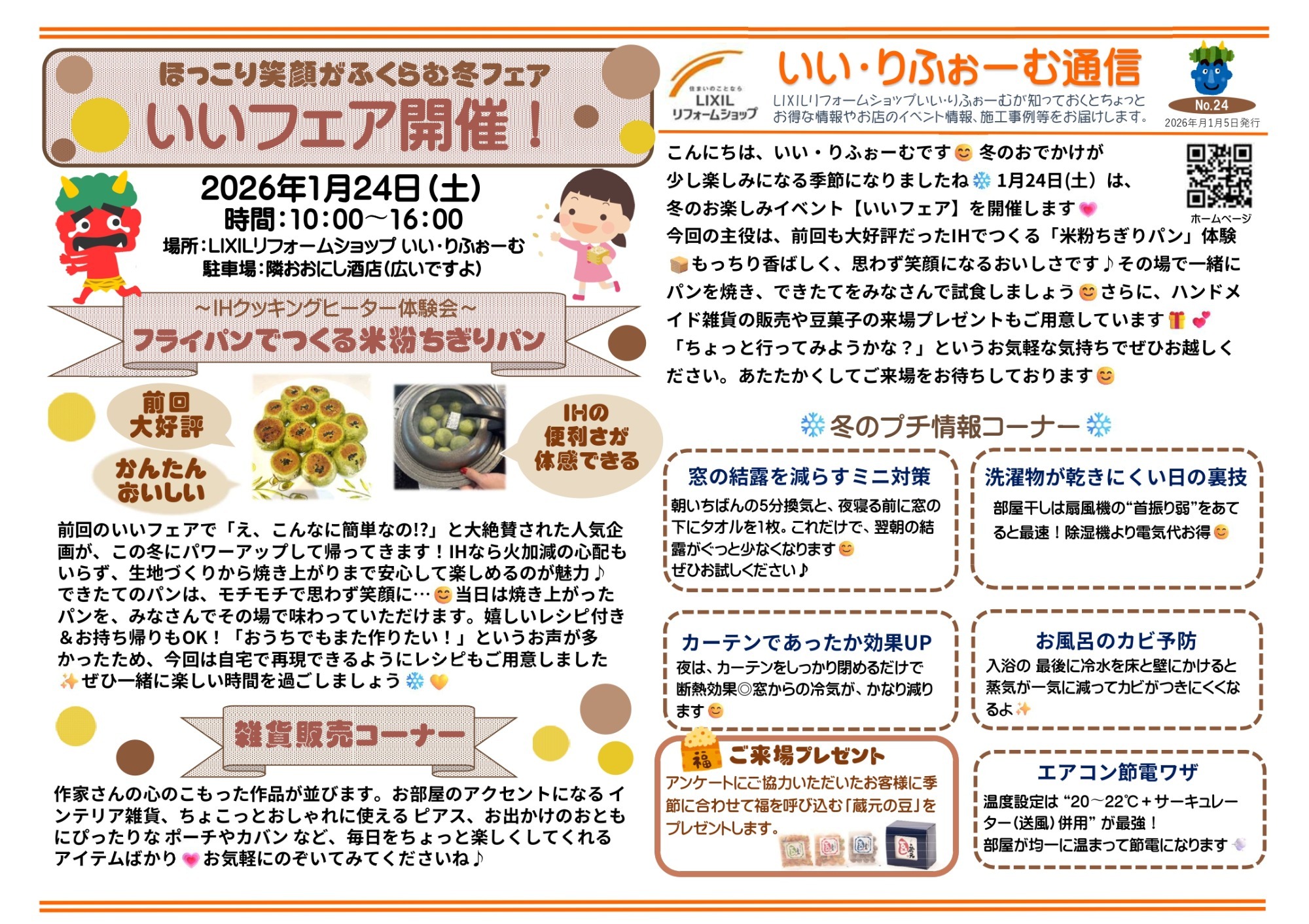 このたび「いい・りふぉーむ通信 NO.24〈冬号〉」 を発行しました。冬をあたたかく快適に過ごすためのリフォームのヒントや、日々の暮らしに役立つちょっとした情報を掲載しています❄️